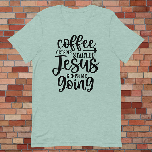 Coffee Gets Me Started, Jesus Keeps Me Going Unisex t-shirt