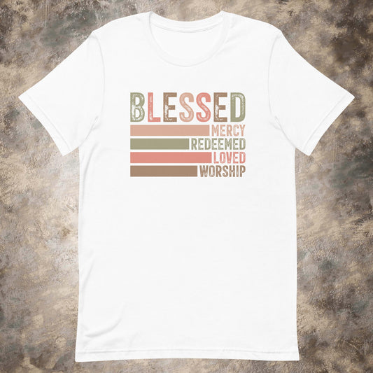 Blessed [Mercy, Redeemed, Loved, Worship] Unisex t-shirt