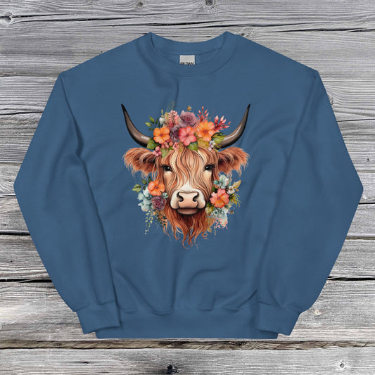 Boho Floral Highlander Cow Unisex Sweatshirt